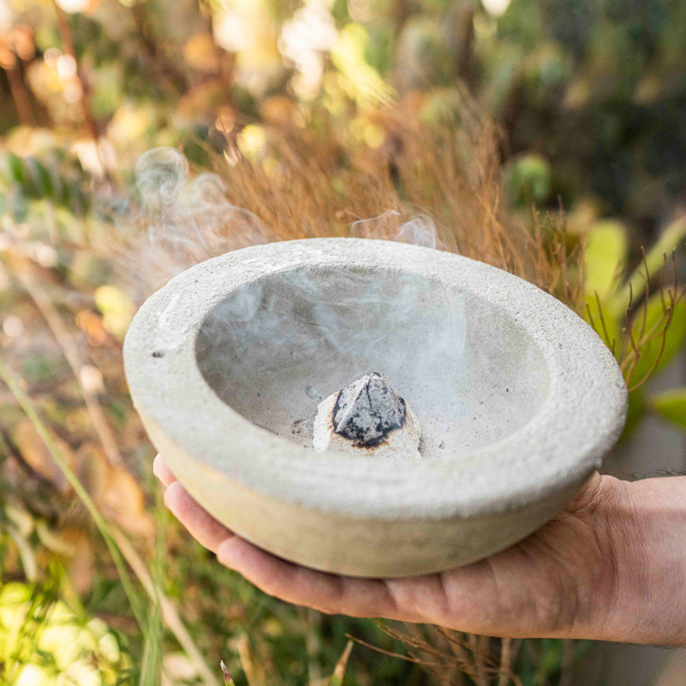 1. Coloca tu sahumerio, carbón o palo santo en el centro del cuenco.